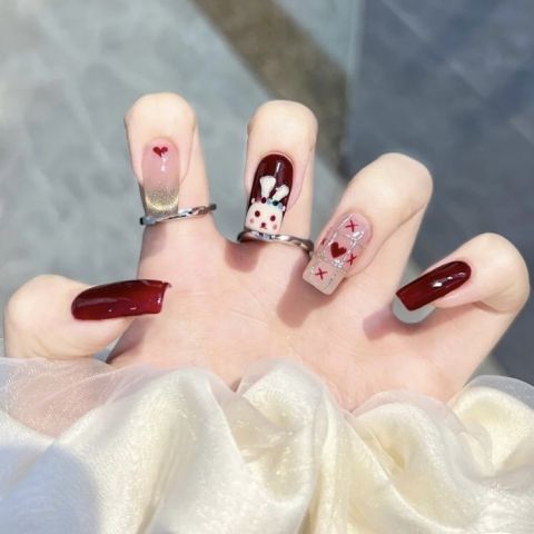 အသည်းပုံလေးတော့ ပုံဖော်ချင်တယ်၊ သေးသေးလေးပဲ ပုံဖော်ချင်တယ်ဆိုရင် ဒီလက်သည်းဒီဇိုင်းလေးက လှပါတယ်။ ယုန်ပုံလေးပါတာကြောင့် ပိုပြီးလူငယ်ဆန်ပါတယ်။