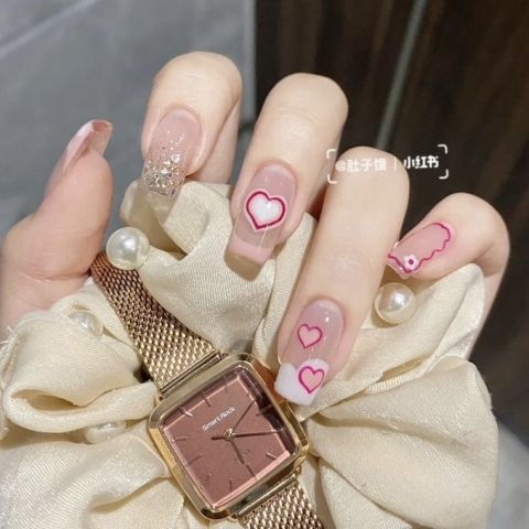 ပန်းရောင်ကြိုက်တဲ့ ကောင်မလေးတွေအတွက် လူငယ်ဆန်ပြီး ဒီဇိုင်းဆန်းတဲ့ လက်သည်းဒီဇိုင်းလေးပါ။